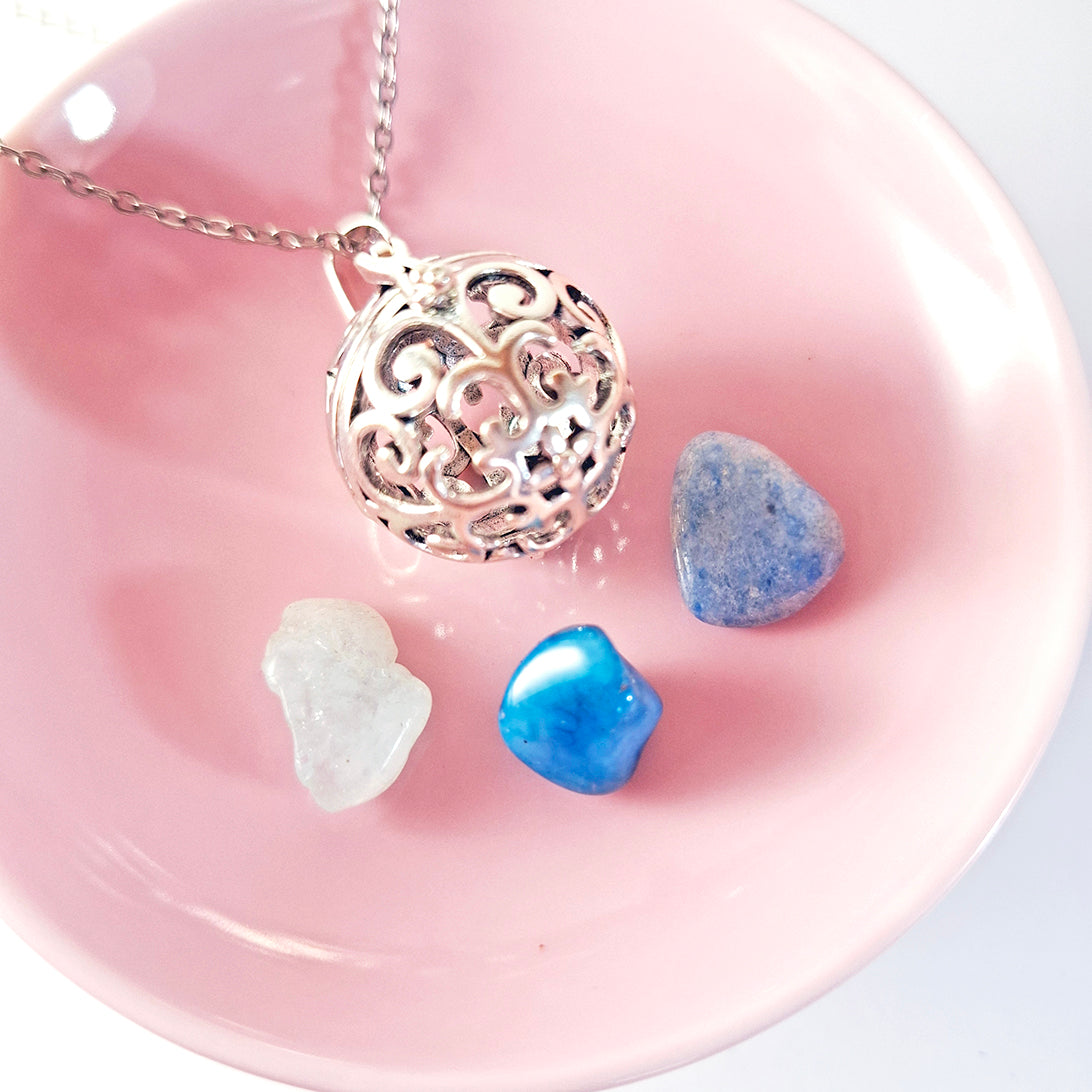 Las Jaulas son canastitas donde puedes introducir tus cristales favoritos según la intención que quieras trabajar. Esta opción incluye las piedras: Aguamarina, Ágata Azul y Cuarzo Azul. Con ellas puedes trabajar tu expresión, comunicación y Relajación.