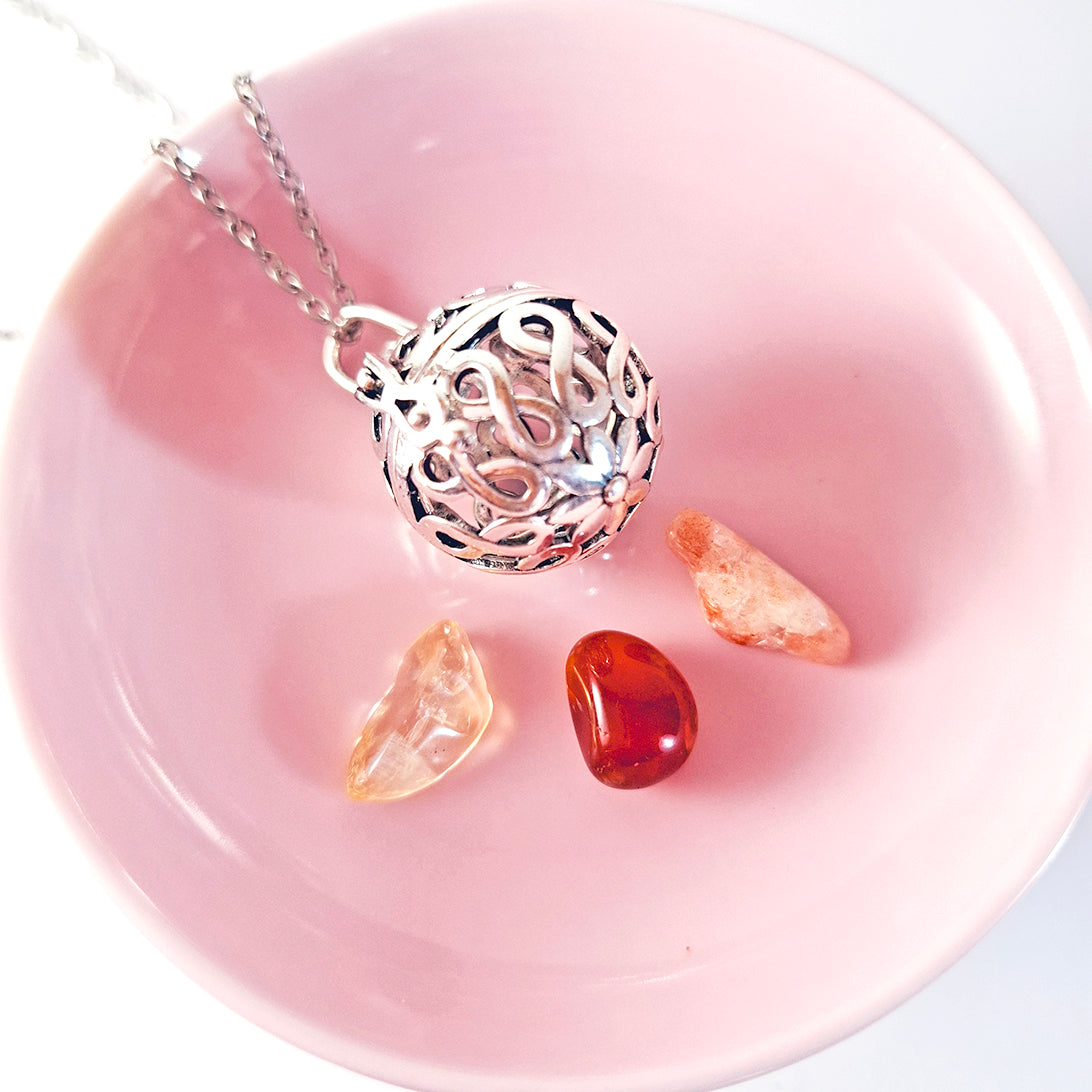 Las Jaulas son canastitas donde puedes introducir tus cristales favoritos según la intención que quieras trabajar. Esta opción incluye las piedras: Citrino, Cornalina y Piedra de Sol. Con ellas puedes trabajar tu autoestima, la creatividad y la motivación.